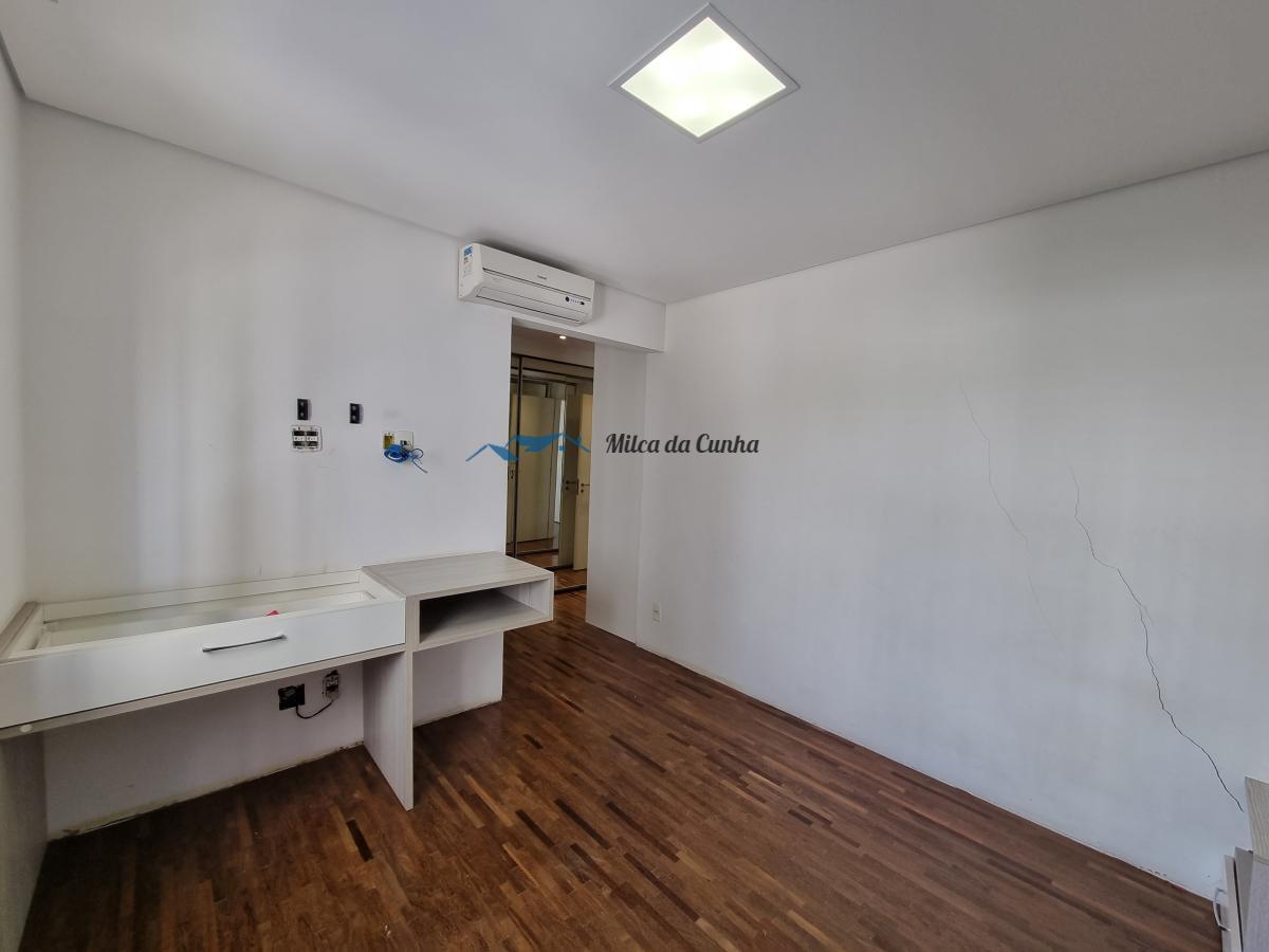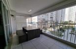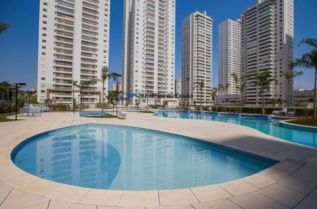 Apartamento com 3 dormitórios com piso em madeira, suite com closet, suíte e banheiros com armários, ar condicionado na sala e suíte, varanda gourmet com churrasqueira à carvão com vista linda para as piscinas do condomínio e fechamento em vidros, cozinha com armários, área de serviço com banheiro e armários. Sala ampla para dois ambientes com piso em madeira, iluminação em led.