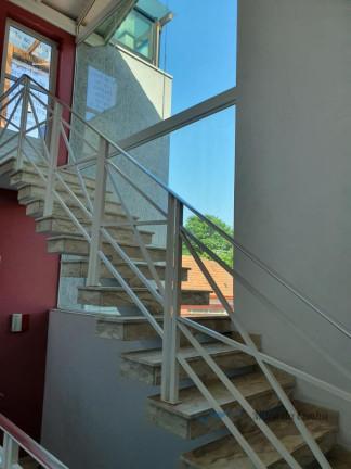 Parede de vidro na escada, com ampla visão para todos os ambientes.