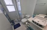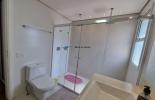 Banheiro do casal possui bancada quartzo Diamont White e revestimento decortiles no box.