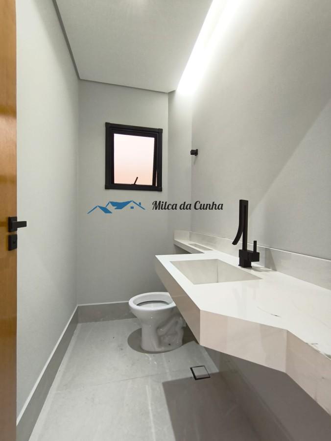 No exterior, o encantador jardim e o quintal privativo se combinam à churrasqueira, perfeito para encontros memoráveis com família e amigos. O portão eletrônico e a garagem coberta para quatro veículos ampliam a sensação de exclusividade e proteção. Os quatro banheiros foram pensados para atender com elegância e funcionalidade, acompanhados de metais modernos e nichos embutidos. Além disso, o pavimento inferior dispõe de um lavabo, enquanto a distribuição interna garante circulação fluida e versatilidade para adaptação de home office ou espaço de lazer.