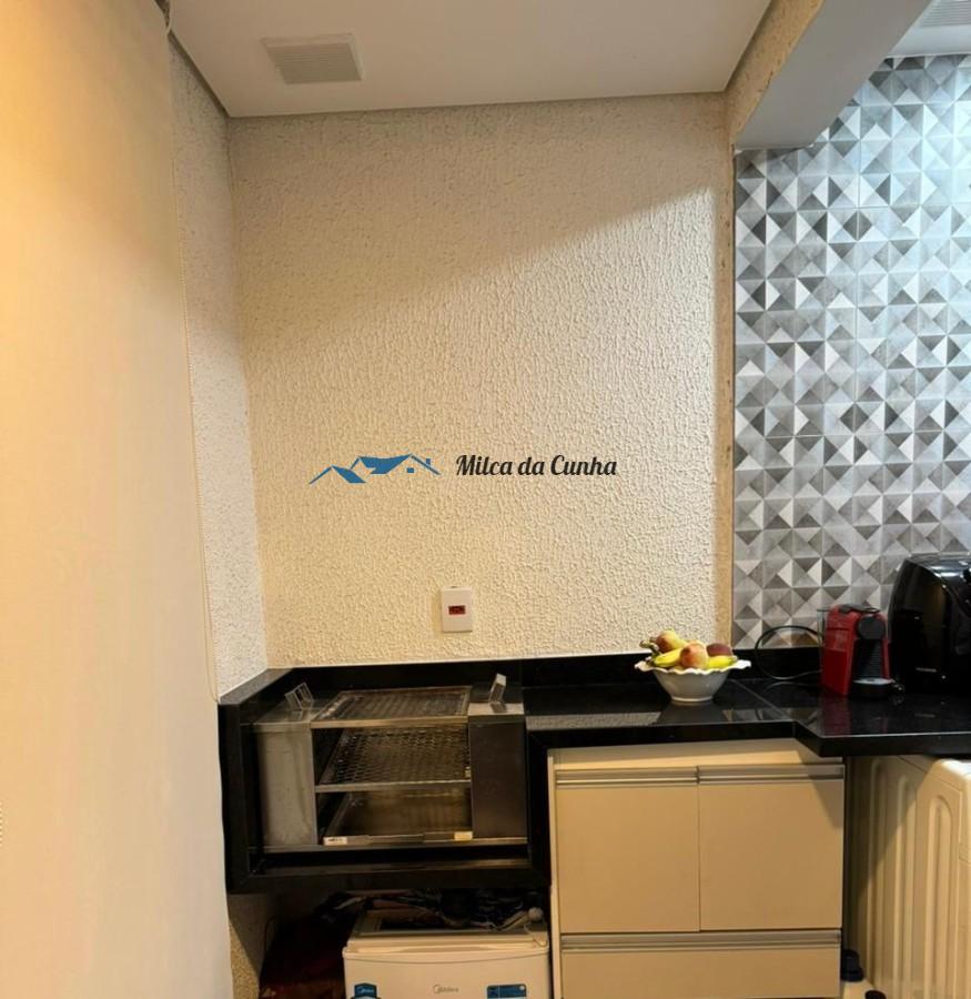 Imagine viver no coração de Diadema, a poucos passos da Praça Lions Clube, em um apartamento prontinho para morar: são 53,40 m² muito bem aproveitados, com sala integrada para dois ambientes, cozinha americana planejada com armários, balcão de granito escuro, fogão com forno embutido e depurador, além de lavanderia que se conecta diretamente à varanda gourmet. Dois dormitórios confortáveis – sendo um suíte – também chegam mobiliados com armários, criado-mudo, escrivaninha e lustres, e o piso porcelanato na área social e vinílico nos quartos garante um toque de sofisticação. A iluminação em LED embutida no gesso faz o ambiente brilhar, e o chuveiro com aquecimento a gás promete banhos aconchegantes.