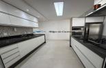Área gourmet: Envidraçada com cortinas de privacidade, armários embutidos, frigobar, adega, mesa com 2 bancos de madeira de demolição, piso porcelanato Portinari, pedra :Verde Ubatuba.