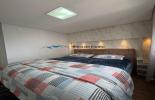 Suíte Marter: closet com detalhes em uma das portas em vidro, cama King Size.
